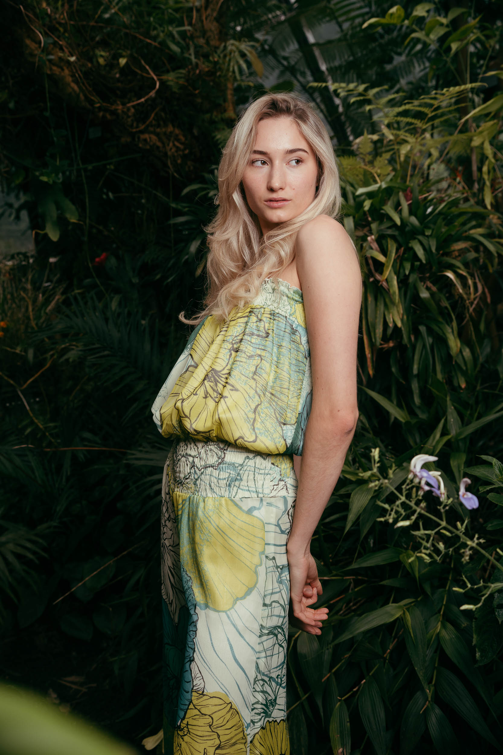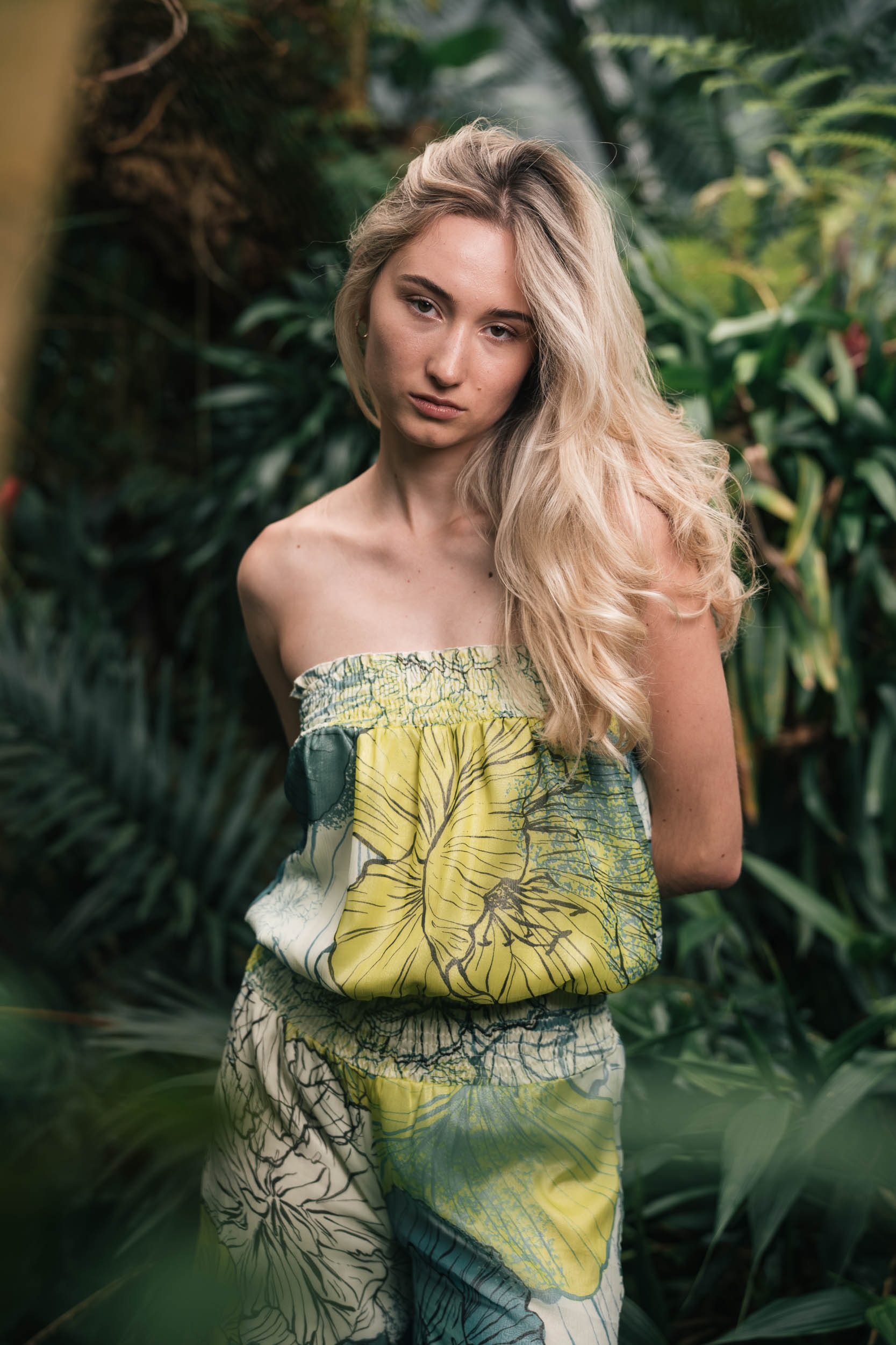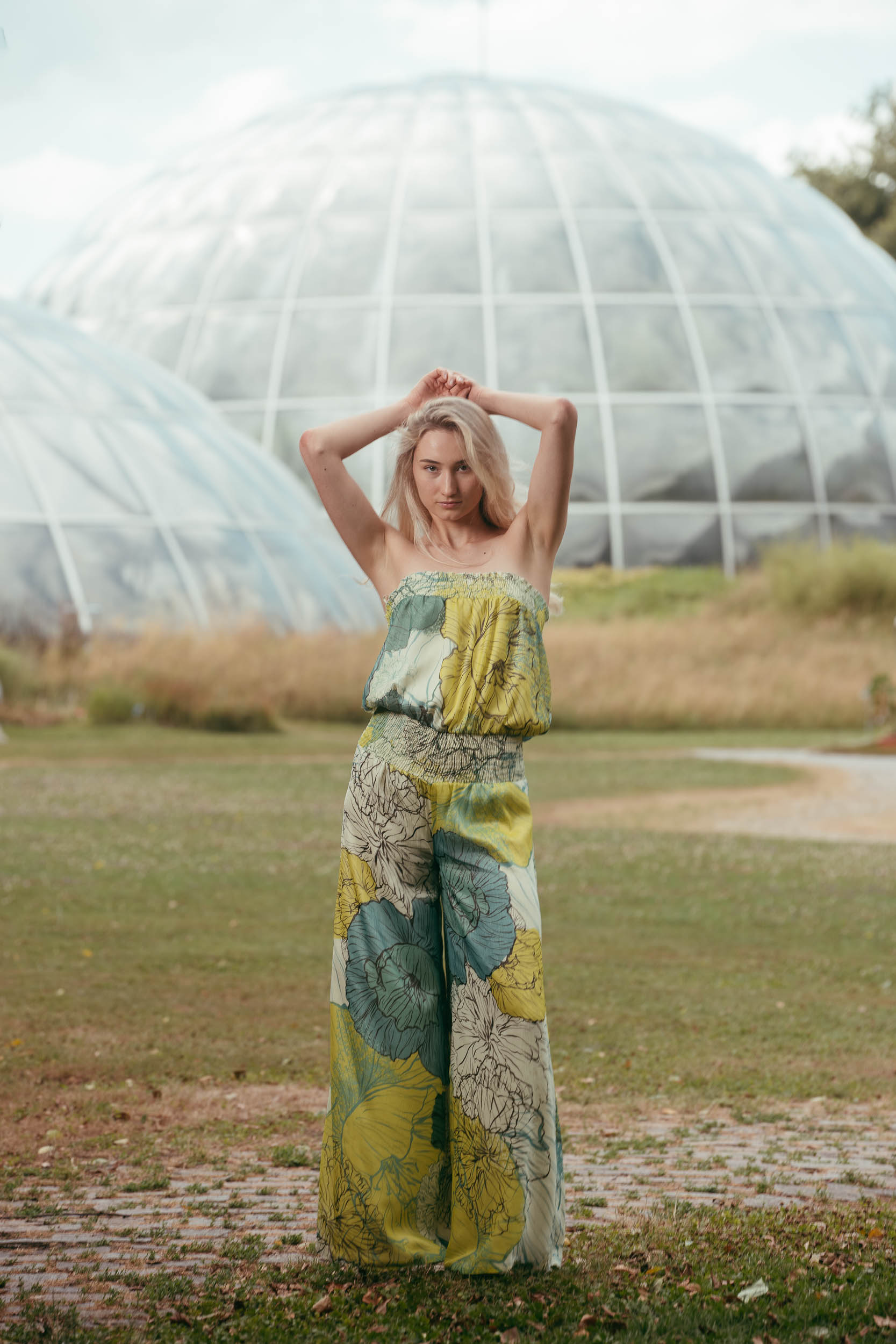 In the Botanical Garden we continue after a short break with reduced setup. Minimal flash light only lifts eyes and mid-tones slightly, the rest stays natural. Initially I stay between 35 and 70mm for quick variations. For the greenhouse domes I switch to 100mm and more so they don’t get lost in the background. Hair keeps blowing into the face, Eye-AF stays locked on. The Tilt-Flip-Screen saves me dirty knees and wobbly overhead contortions.