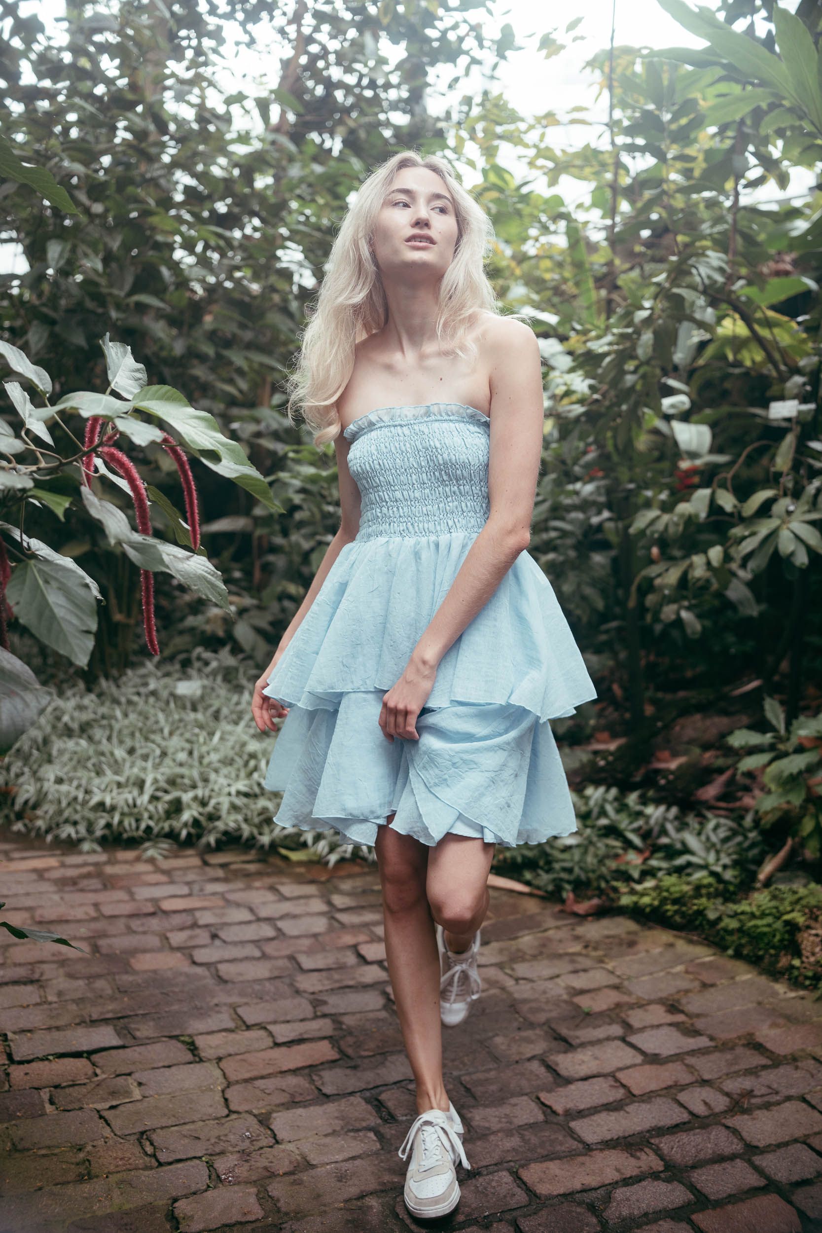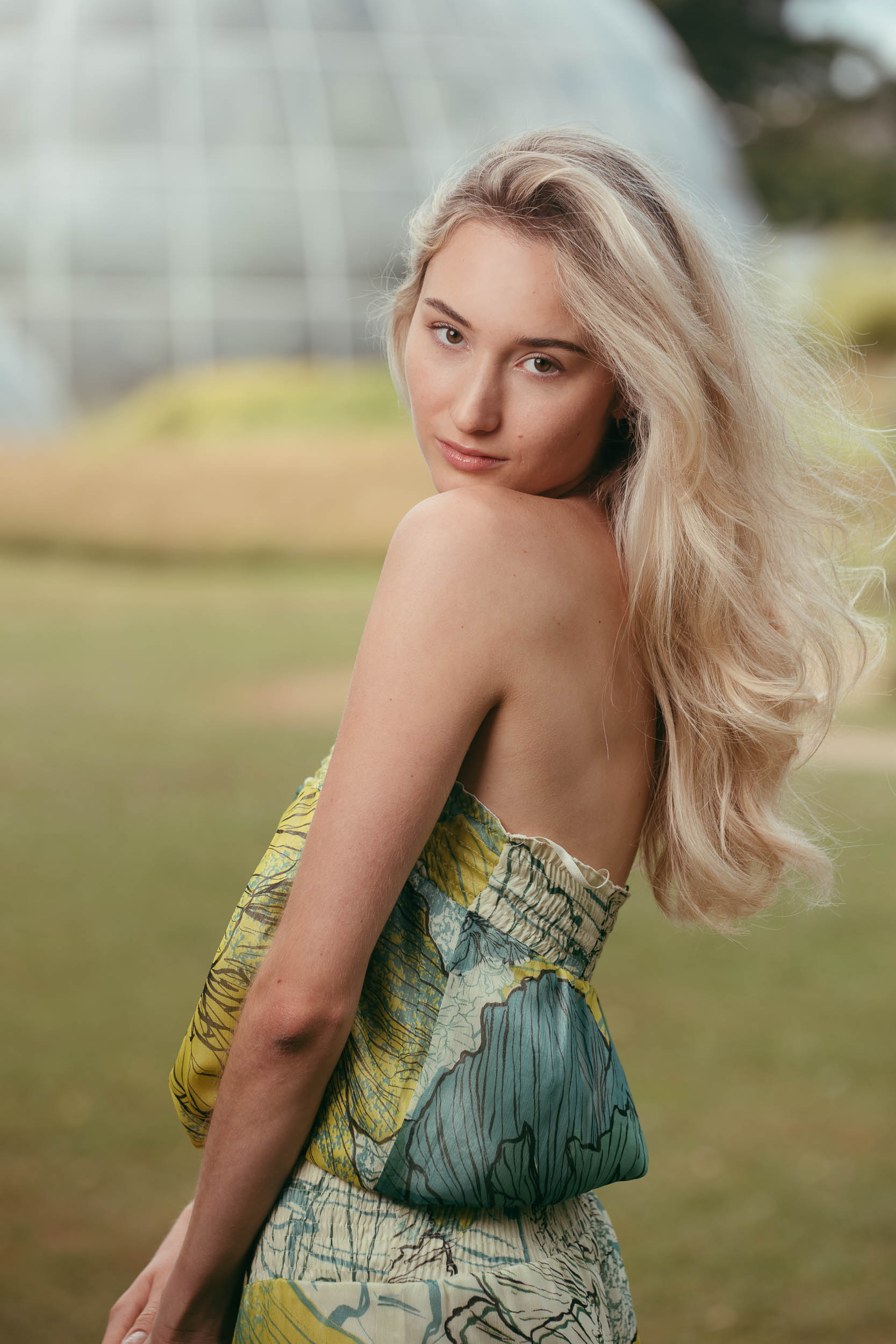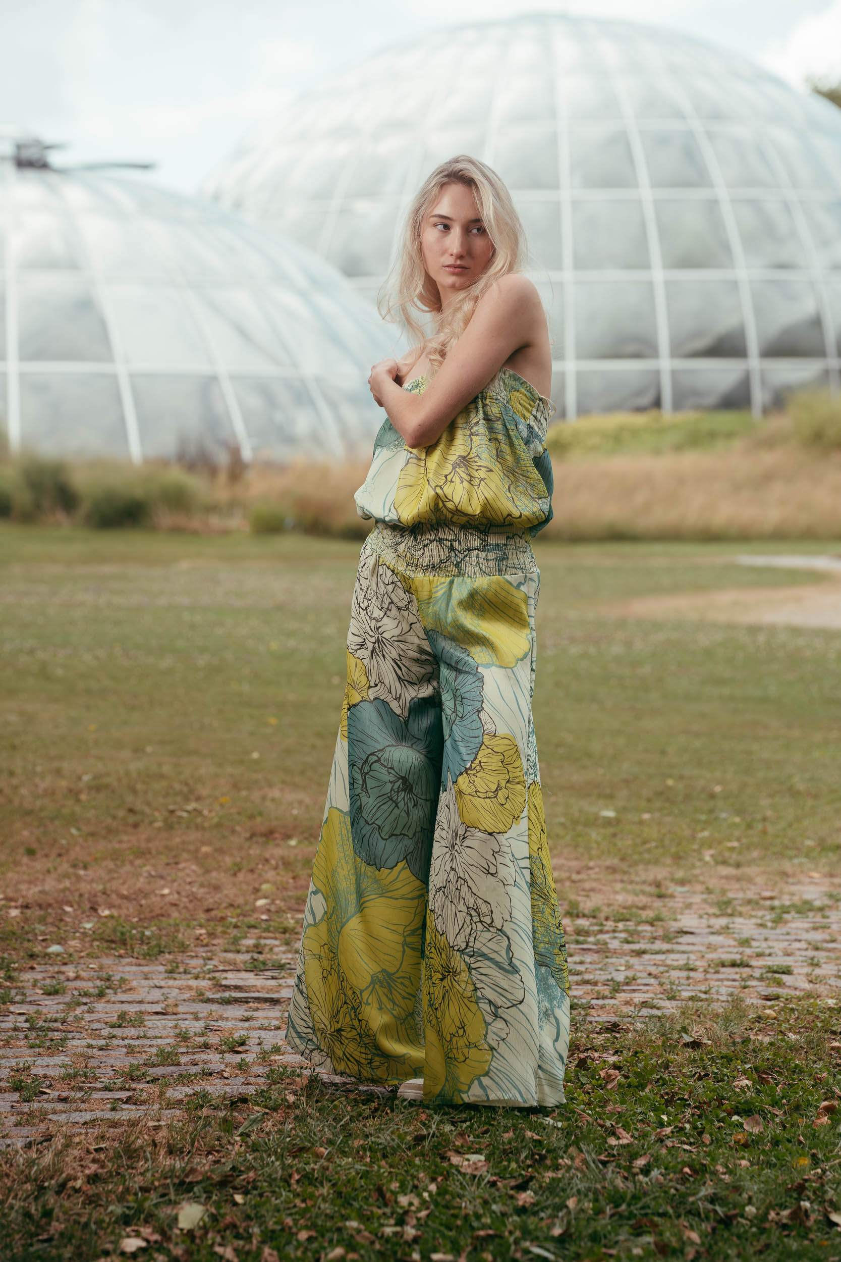 In the Botanical Garden we continue after a short break with reduced setup. Minimal flash light only lifts eyes and mid-tones slightly, the rest stays natural. Initially I stay between 35 and 70mm for quick variations. For the greenhouse domes I switch to 100mm and more so they don’t get lost in the background. Hair keeps blowing into the face, Eye-AF stays locked on. The Tilt-Flip-Screen saves me dirty knees and wobbly overhead contortions.