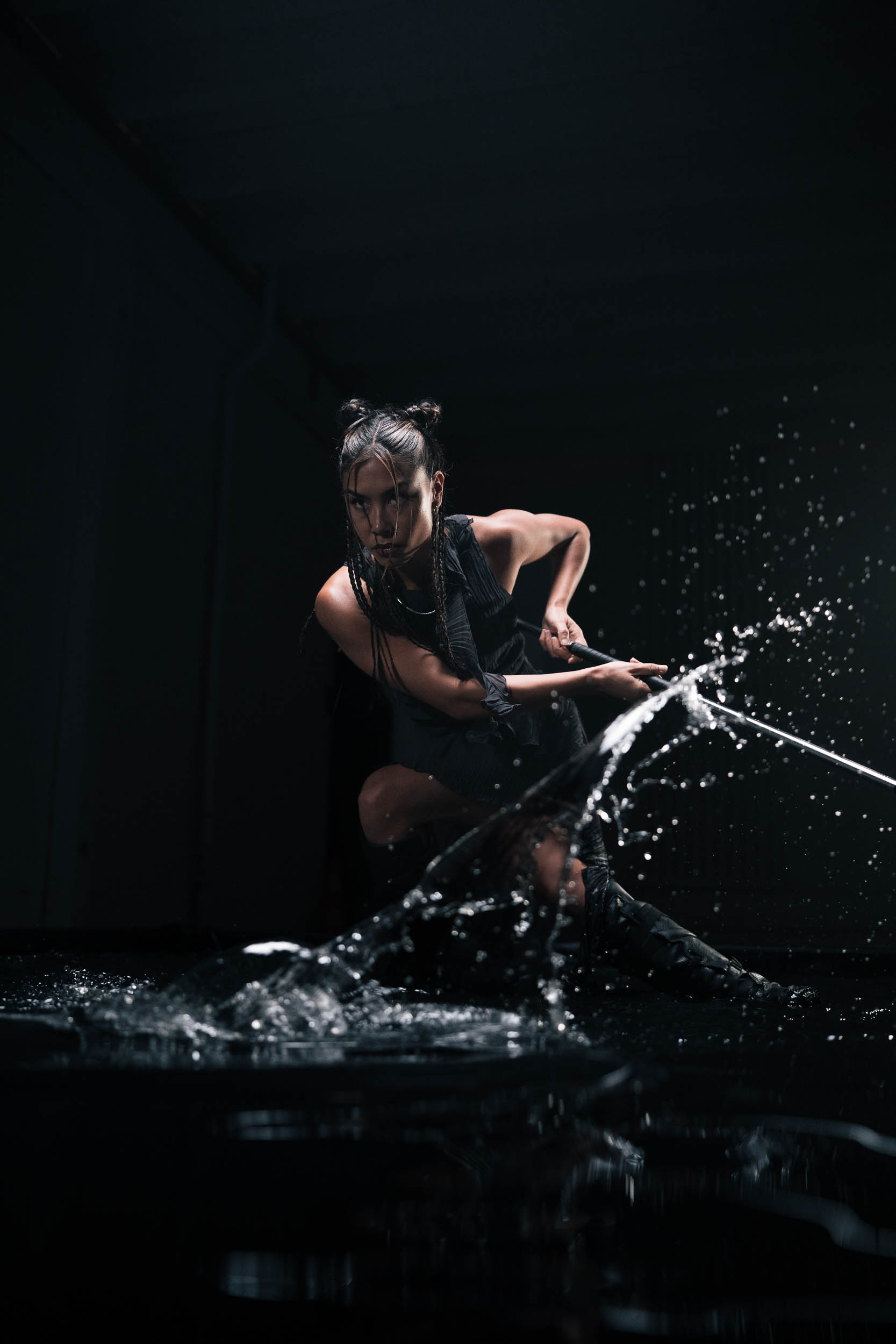 At the second Swiss Creator Lab event in Zurich, significantly more people were present. In total, over 140 people were registered. For this, the team from Swiss Creator Lab, Sony and Foto Zumstein rented the photo hall in Schlieren and set up many different sets. There were also workshops with Sven Germann and Muriel Rieben present, who conducted workshops. I mainly stayed with Muriel because she had set up a really moody water set that I really liked. Due to the atmosphere, I could test the AF of the A1 II again. I also used my own lenses again, namely the Tamron 35–150mm F2–2.8 and the new Tamron 16-30mm F2.8. The AF was again very reliable here, but certainly not at the level of the native Sony lenses. However, I had more flexibility with focal length. I could also unintentionally test the weather resistance of the A1 II here, as I accidentally held the camera in water, so please don’t try this at home.